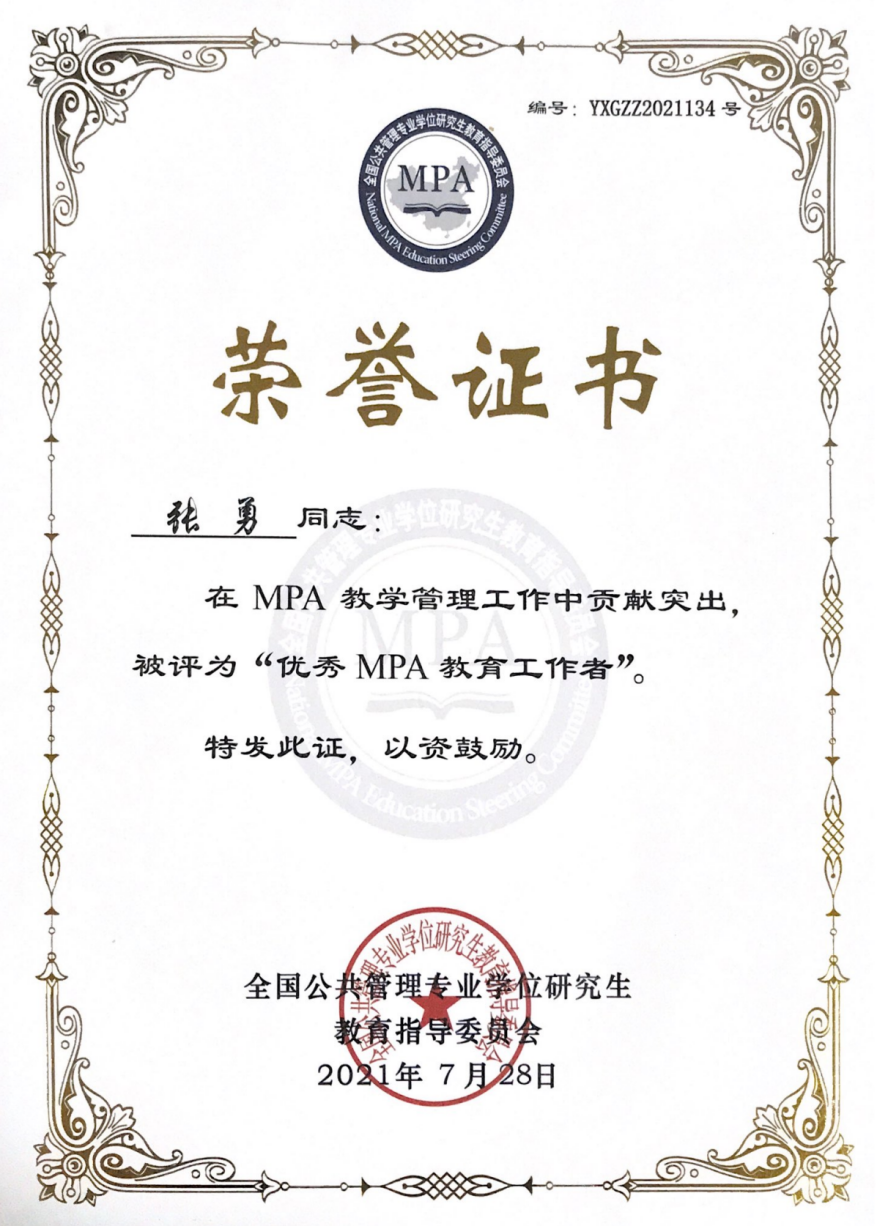 为不断优化师资队伍,提高教师的专业水平,MPA教育中心组建了一支包括教育部长江学者、新世纪优秀人才在内的高学历、高职称、高水平的“双师型”师资队伍,即专职校内导师和兼职校外导师队伍。充分利用与地方政府、企事业单位的良好合作,选聘了一批具有扎实理论功底、丰富实践经验的领导干部和专业人员为MPA专业教育的兼职教授和校外导师,实质性地参与到MPA教学培养工作中。