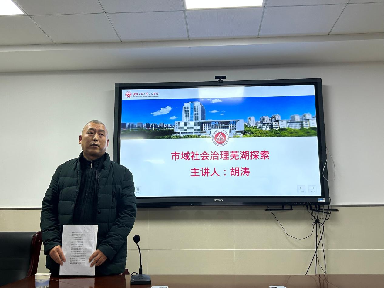 胡涛以“市域社会治理芜湖探究”为题,从新时代“七纵”体系切入,具体阐述具有芜湖特色的党建领安、多方筑安、解纷定安、群众护安、法治固安、文化润安和智治促安“七安”市域社会治理新局面。