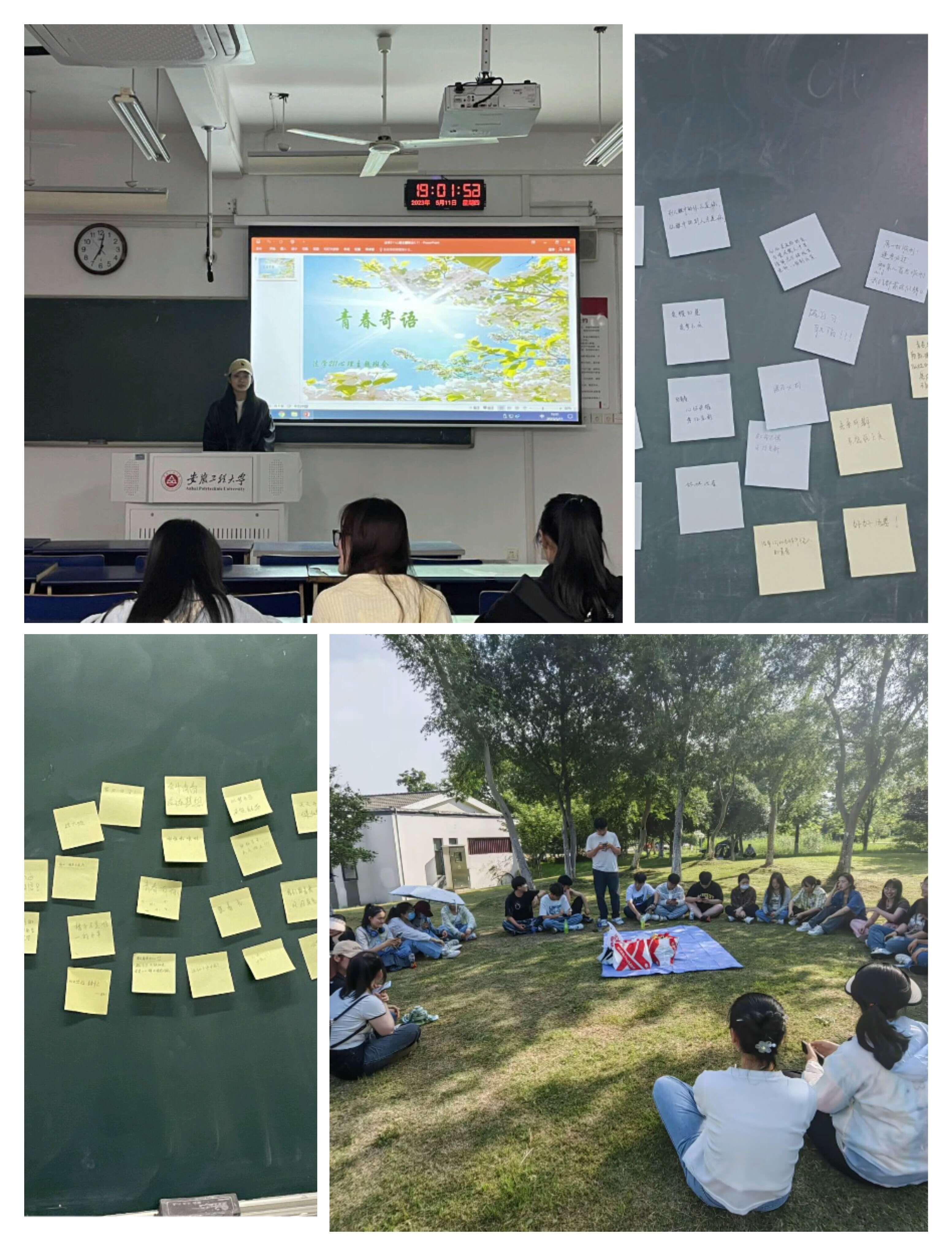 一是,开展“青春寄语”心理班会。人文学院21级、22级本科班积极响应学院心理健康周活动,全面开展主题为“青春寄语”的心理活动。此次班级活动把心理咨询和心理健康教育活动落到实处,同时积极推进心理健康趣味学习,发掘、开展一批契合主题及实际,且参与面广、形式多样的主题活动。法学211、法学212、法学221班以青春寄语绘心,向同学和学校表达美好祝愿;法学222、行管211、行管212班开展户外活动,在神山公园进行室外游戏,在天然氧吧放松身心;行管221班开展主题朗诵,通过朗诵有启发意义、积极向上、能体现生活真善美的文章、故事,呼吁大家积极重视心理健康;电商法221班开展主题心理活动,宣讲心理健康PPT,讲述心理健康的重要性和正确调节方法,通过观看励志影片《阿甘正传》,学习主人公坚韧不拔的品质、与人为善的美德。