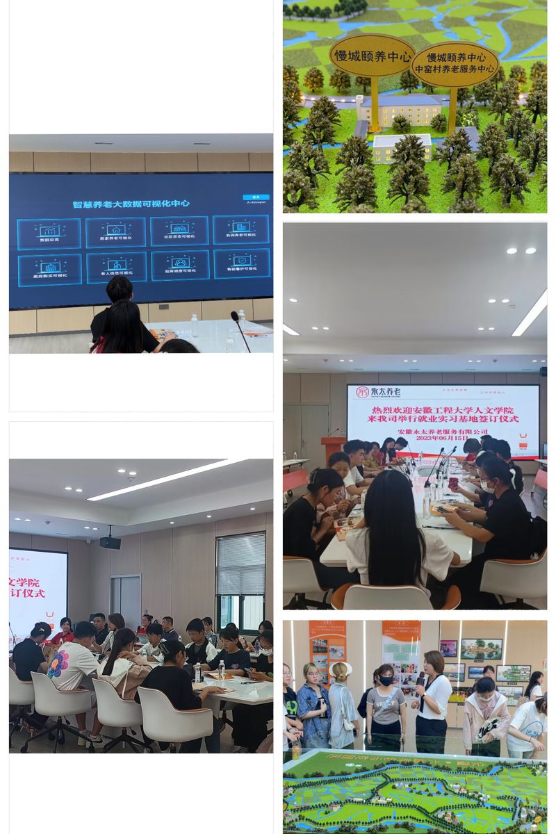615日下午,学院党委副书记王中江、社会工作系教师孙丽、梁琛琛带领同学们来到安徽永太养老服务有限公司二分院(芜湖市湾沚区六郎慢城颐养中心)进行了参观学习。机构负责人汪佩向师生介绍了慢城分院的发展历程,并带领同学们参观了养老院内基础设施及各功能室。在座谈交流中,同学们就养老院发展、社会工作与养老等问题与机构老师进行了互动。最后,同学们共同见证了人文学院与安徽永太养老服务有限公司签署就业实习基地的签订仪式。