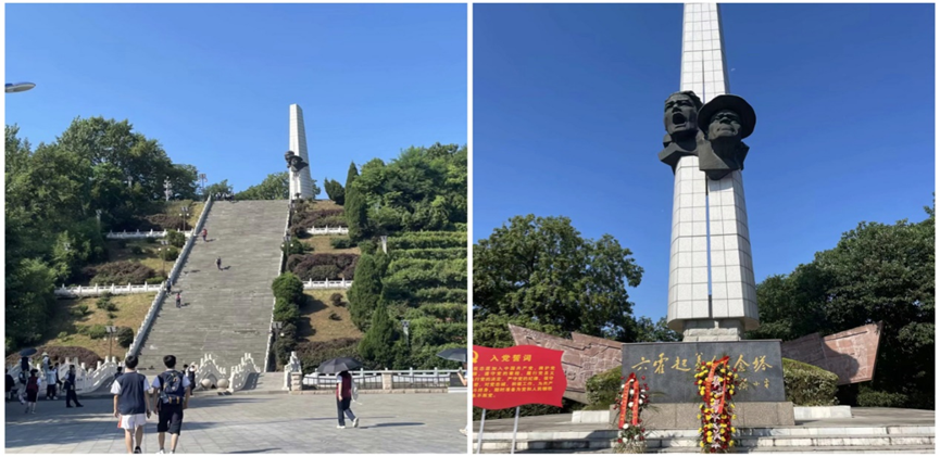 712日,团队来到六霍起义纪念塔,向革命先烈鞠躬致敬。纪念塔由塔碑、纪念塔主体和浮雕墙构成,记录着独山暴动的经过及伟大意义,同时记载了无数先烈为中国革命捐躯献身和解放后授衔将军的数目。在理论学习环节,团队成员集中学习了习近平总书记关于红色文化、革命文化的重要论述,感悟先辈精神,赓续红色血脉。在调研环节,团队成员通过线上问卷调查的方式,统计往来行人对于红色文化与红色遗址的了解程度,探究红色旅游对于红色文化传承的作用。
