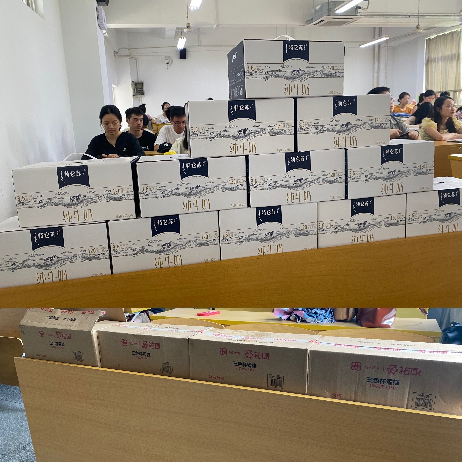 最后,学院为留校学生发放特仑苏牛奶、三色杯雪糕。