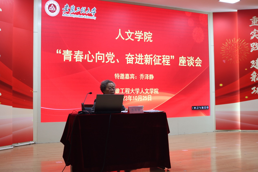 为进一步落实“三全六专”育人实践,做深做实新生入学教育,帮助2023级新生迅速完成角色转变、更好地认知大学、有效进行自我管理,激发成长内驱力,为大学生涯、职业生涯、人生成长打好基础,1025日下午,人文学院在学术报告厅召开2023级新生“青春心向党,奋进新征程”座谈会。我校退休干部、体育学院原党总支书记、人文学院辅导员成长导师乔泽静应邀担任主讲嘉宾,人文学院团委副书记利昕云、全体2023级新生参加了本次活动。