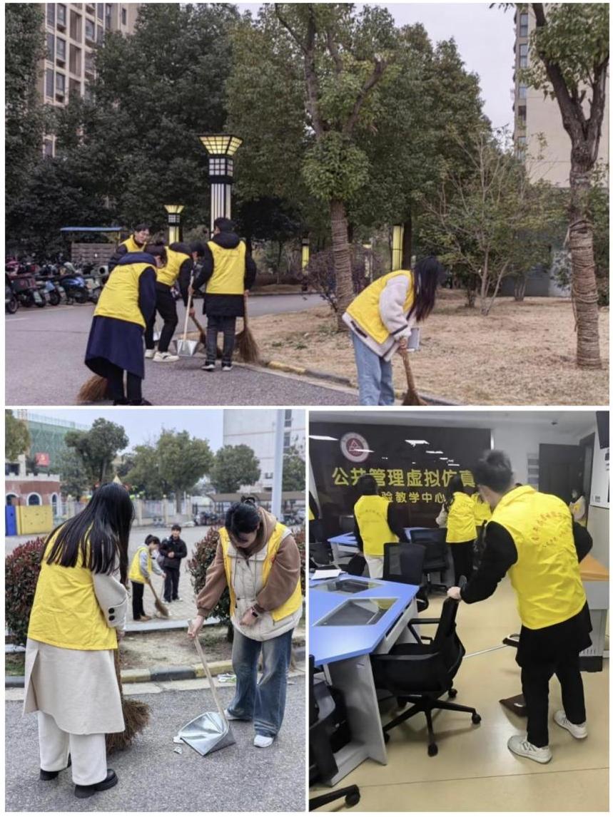 最后,全体人员前往官陡街道神东社区润津花园、学院实验室等地,开展校园环境清洁志愿服务活动,以实际行动共建美丽校园,营造干净、整洁、舒适的学习生活环境。