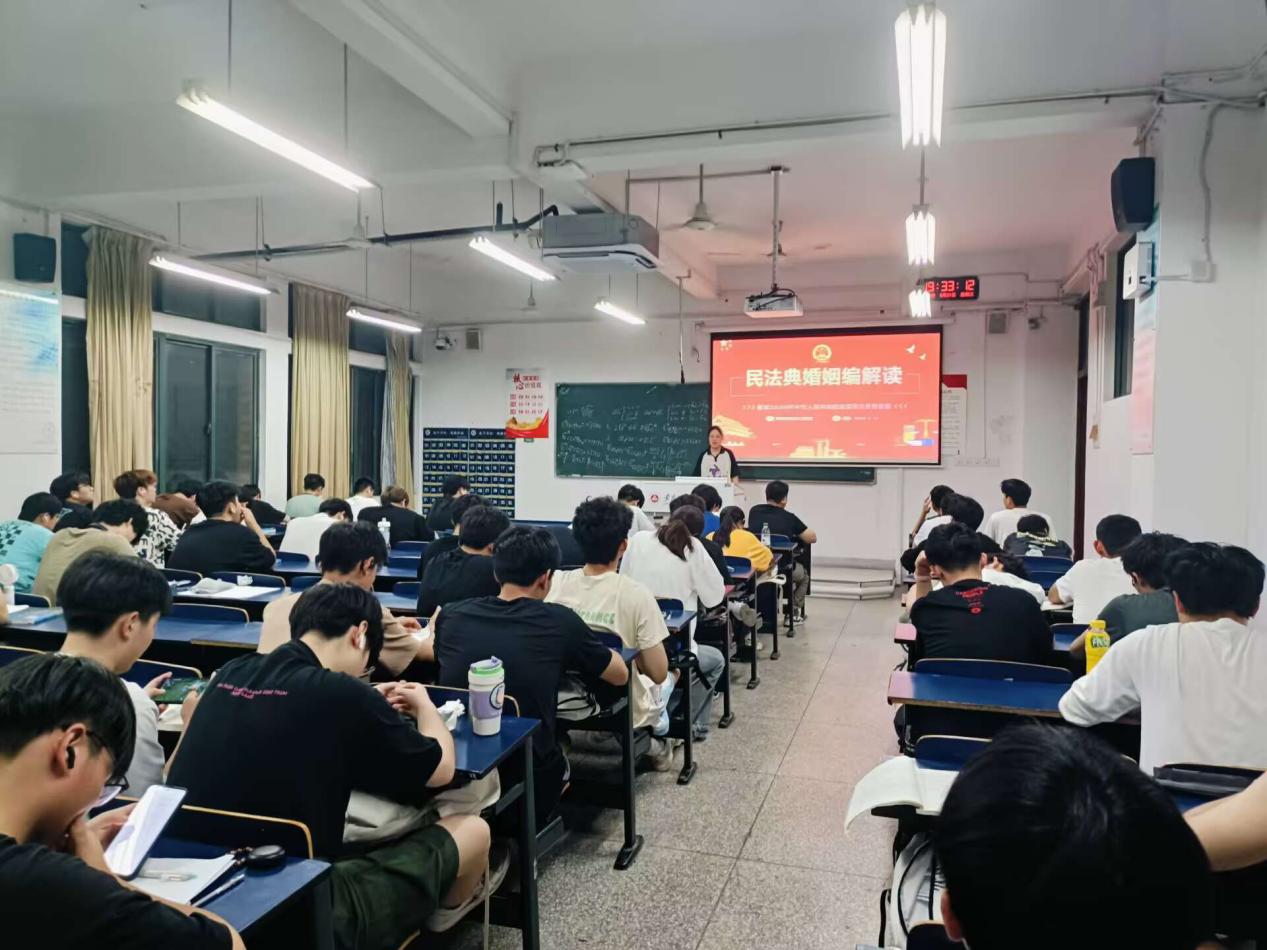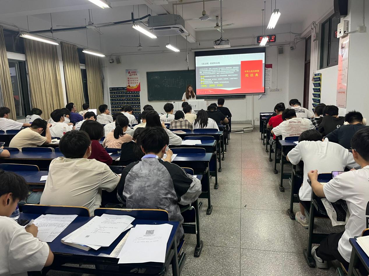 在第五个“民法典宣传月”到来之际,为深入学习贯彻习近平法治思想,增强学生的法治观念,提高学生的法律素养,5月20日—21日,人文学院法学系教师党支部、法学系普法宣传功能型党支部师生在5J集中开展题为专题宣讲11场,普及全校5个学院500余名学生。