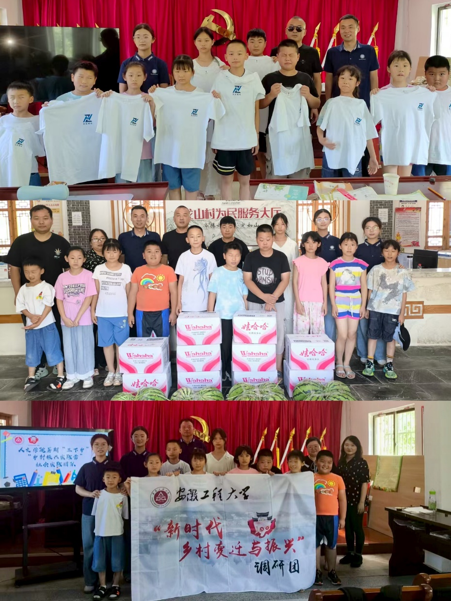 在何湾镇党委的关心和支持下,“暑期爱心学堂”的顺利开展离不开社会各界爱心人士的倾情助力。孩子们日常学习所需的笔记本、铅笔、彩笔等文具,酷暑中解暑的矿泉水、添置的衣物,乃至每日精心准备的爱心午餐,各类物资的精准资助为学堂提供了坚实保障,让留守儿童在关爱中安心学习、快乐成长,也让调研团得以更专注地投入教育教学与实践工作。同时,学校各级领导老师多次实地走访看望调研团成员,对调研团深入田间地头、服务乡村振兴的行为给予肯定,鼓励调研团充分发挥专业优势服务乡村振兴,在基层实践中淬炼青春担当。