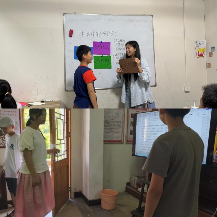 针对儿童群体的认知特点, 宣讲队通过生动宣讲、趣味游戏、情景剧演绎的形式,培养孩子们的科学思维,激发爱国情怀与探索热情。在芜湖市南陵县何湾镇龙山村“暑期爱心学堂”,宣讲队成员带领学堂的孩子们创排弘扬“两弹一星”精神话剧,从了解科学家的故事到代入科学家的身份,沉浸式艺术教育的方式使孩子们与历史对话、与英雄同行;在宣城市泾川镇官塘社区红色驿站,宣讲队成员手绘“科研历程时间轴”卡片,互动式讲述邓稼先在戈壁滩的故事,让孩子们在轻松氛围中领悟其中蕴含的爱国情怀、对科学的执着追求,以及艰苦奋斗的品质。