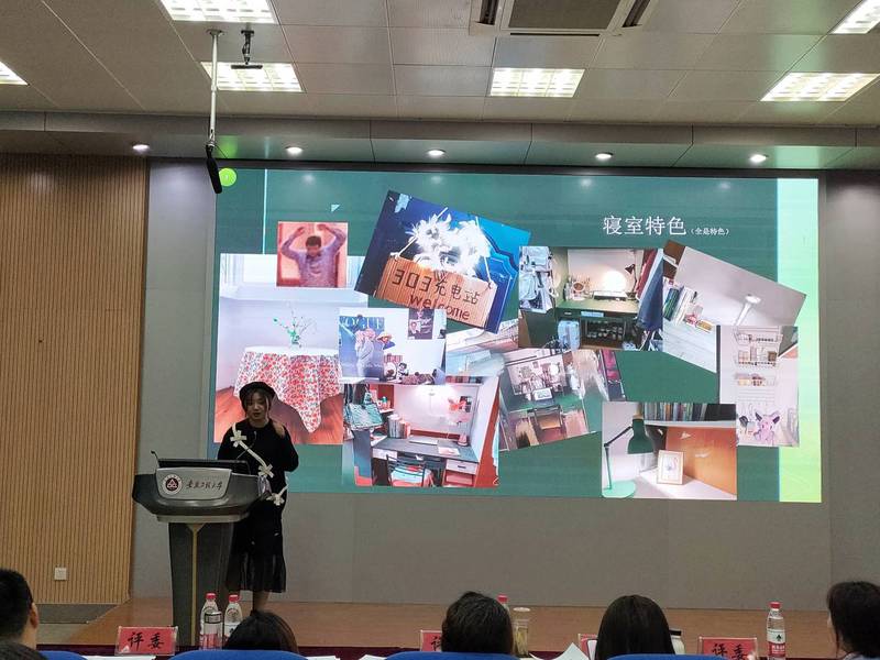 本次寝室设计大赛本着绿色环保、积极向上的原则对寝室环境进行改造,自10月份启动,初赛于10月27日举办,21级46个寝室参与。通过走访全部寝室、现场解说和展示寝室设计风格和灵感,等环节,最终十个宿舍进入决赛。决赛现场,十个宿舍通过PPT、短视频展示寝室宿舍成员,以宿舍为单位进行了集体才艺展示,一首首歌曲《稻香》、《夜空中最亮的星》悠扬婉转,同学们热情洋溢的舞蹈《好运来》《酒醉的蝴蝶》也让现场的氛围一度推向高潮。