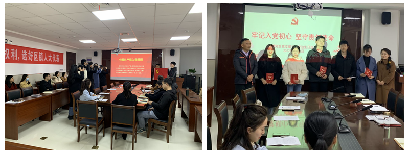 五位党员同志分别从观看《觉醒年代》、红色基地参观学习、抗美援朝英烈事迹、抗疫精神和伟大建党精神等方面,分享了入党以来特别是开展党史学习教育以来的学习、成长与收获;在支部宣传委员周恒梅的带领下,五位党员同志重温了入党誓词。