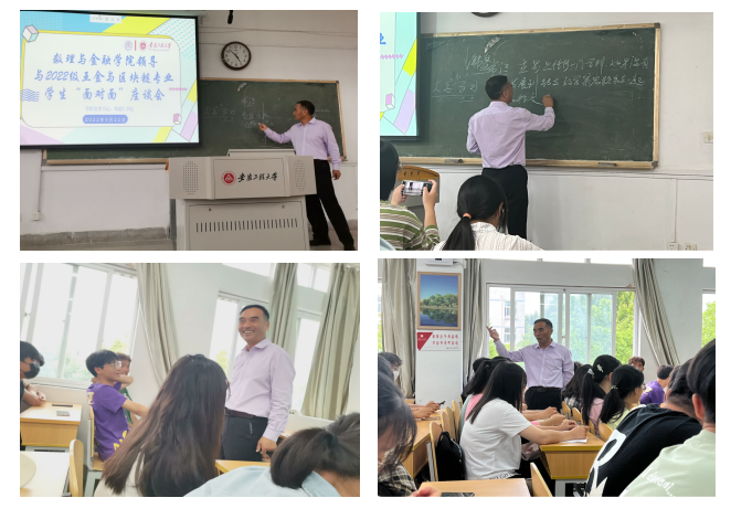 互联网金融与区块链专业“面对面”座谈会上,周毅仁向同学亲切问好,询问同学们在校学习生活情况。周毅仁向同学们介绍了大学学习对未来人生的重要作用,尤其是数学的学习至关重要,马克思说过“世界上任何一门学科,如果没有发展到能与数学紧密联系在一起的程度,那就说明该学科还未发展成熟”,强调“无数学,不科学”,激励同学们学好数学,过好大学生活。