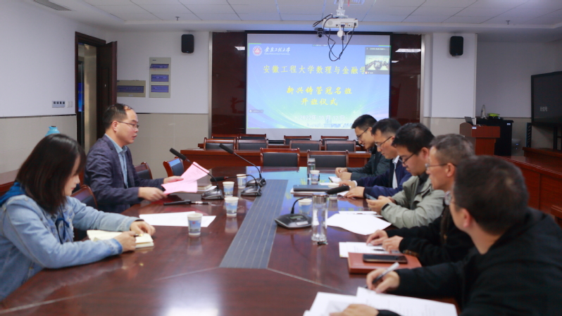 10月12日下午,数理与金融学院在T1612会议室举办“新兴铸管”冠名班开班仪式。芜湖新兴铸管股份有限责任公司人力资源部(党委组织部)副部长胡智坚出席,数理与金融学院相关专业系主任、院团委书记、冠名班班主任及全体学员参加。开班仪式采取线上线下相结合的形式举行,学院党委副书记、纪委书记何志恒主持开班仪式。