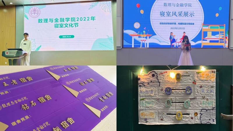 “评理说事大课堂”、“宿舍文化节”、“宿舍云上自习室”、“宿舍运动对抗赛”、“宿舍学生座谈会”、“宿舍博士讲二十大”…随着数理与金融学院落实“三全六专”工作方案,构建和谐宿舍各项工作的推进,越来越多的新鲜事出现在学生宿舍。44场活动的陆续开展,让学院的学生切实感受到了“正、学、壮、乐、勤、和”的育人理念,也真正在参加和谐宿舍创建中受教育、长才干。