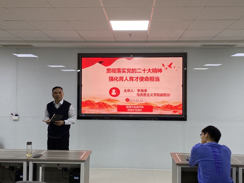 3月10日,学院邀请马克思主义学院副院长李海涛教授在T1707室为学院师德示范团队作题为“贯彻落实党的二十大精神,强化育人、育才使命担当”的专题辅导报告。学院党委书记周毅仁主持报告会。