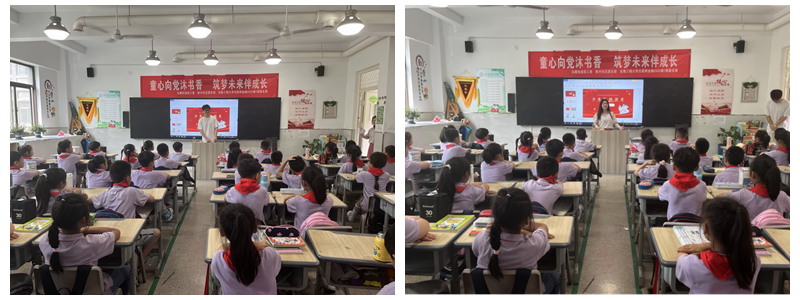 活动伊始,志愿者给小朋友们讲解了少年先锋队的含义、少先队的来源和历史,以及如何做一名优秀的少先队员,让小小的红色种子在小朋友们的心中生根发芽。同时,志愿者向小朋友们传达了阅读的重要意义,倡导绿色阅读、文明阅读。小朋友们纷纷拿出自己最喜爱的书籍,相互讨论,并上台推介自己最喜爱的书籍。