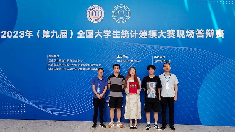 由中国统计教育学会联合教育部高等学校统计学类专业教学指导委员会、全国应用统计专业学位研究生教育指导委员会主办的2023年(第九届)全国大学生统计建模大赛现场答辩赛及闭幕式于8月21-23日在浙江财经大学举行。我校本科生组刘妍、杨永博、陆逸洋团队(指导教师:王军、周金明),在经过省赛的选拔后,成功入围国赛并参加现场答辩赛。经过两天的激烈角逐,成功获得了全国二等奖。
