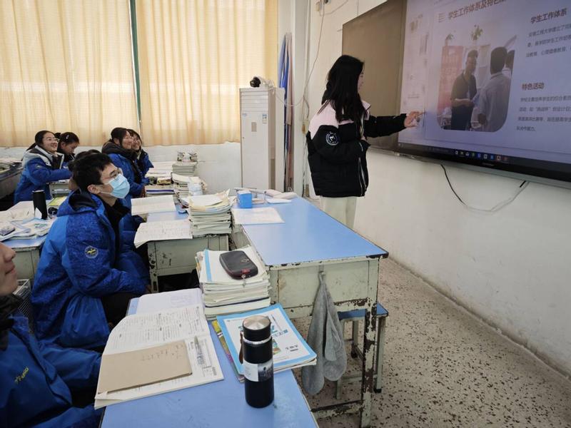 为了引领青年学子积极参与家乡建设发展,落实学校“假日思政”主题教育活动,发挥实践育人功效,1月29日,数理与金融学院2023级“返家乡实践团队”回到家乡、回到母校,走访濉溪中学、淮北实验高级中学,为学弟学妹们开展别开生面的招生宣传活动。