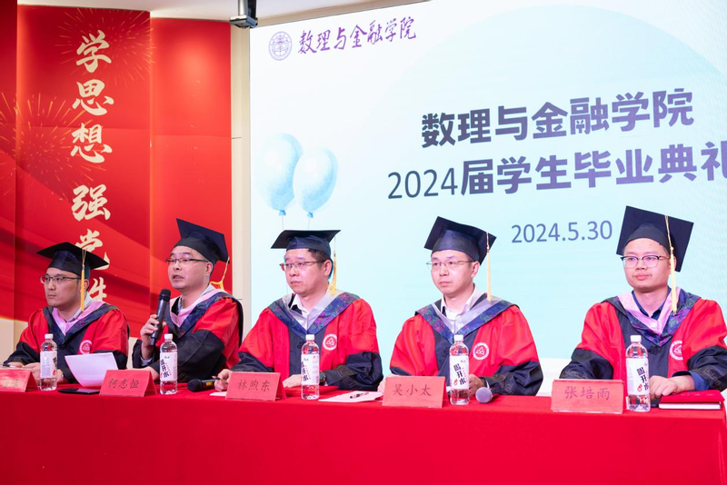 5月30日,数理与金融学院在学术报告厅举行2024届毕业生毕业典礼。学院党委书记林煦东、院长吴小太、副院长张培雨、潘海峰出席,2024届全体本科和硕士毕业生、教师和家长代表参加。学院党委副书记何志恒主持毕业典礼。