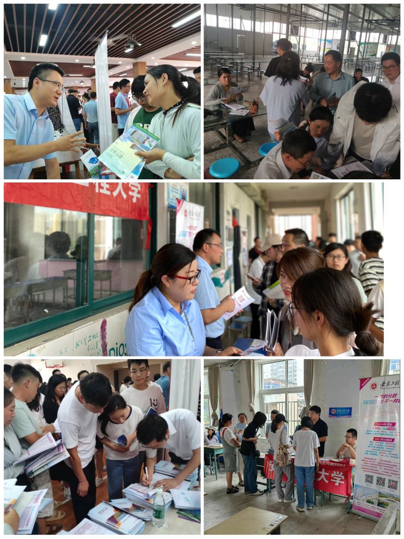 6月25日-28日,由学院领导带队、8名骨干教师组成的招生宣传队伍,兵分两路,前往淮北、阜阳、亳州开展线下招生宣传工作,为考生志愿填报提供指导服务。在各宣传点,工作人员在宣传我校专业学科特色的同时,还结合考生自身实际,指导考生完善个人志愿填报方案,得到了现场家长与学生的一致认可。尤其在树人中学开展招生宣传时,周边兄弟院校均已收摊结束时,我校的老师们依然被考生围住,给考生做详细的指导。