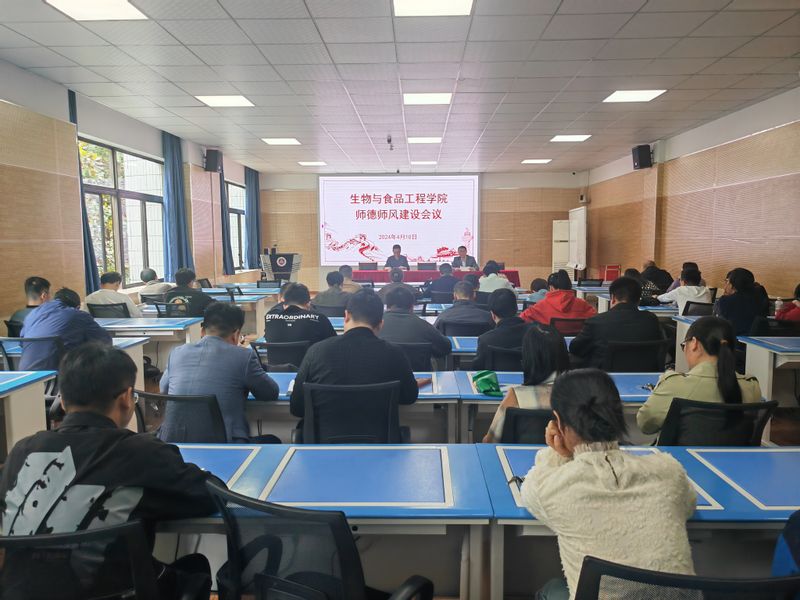 为进一步加强师德师风建设,4月10日,生物与食品工程学院召开师德师风建设专题会议,全体教职工参加了会议。会议由学院院长葛飞主持。