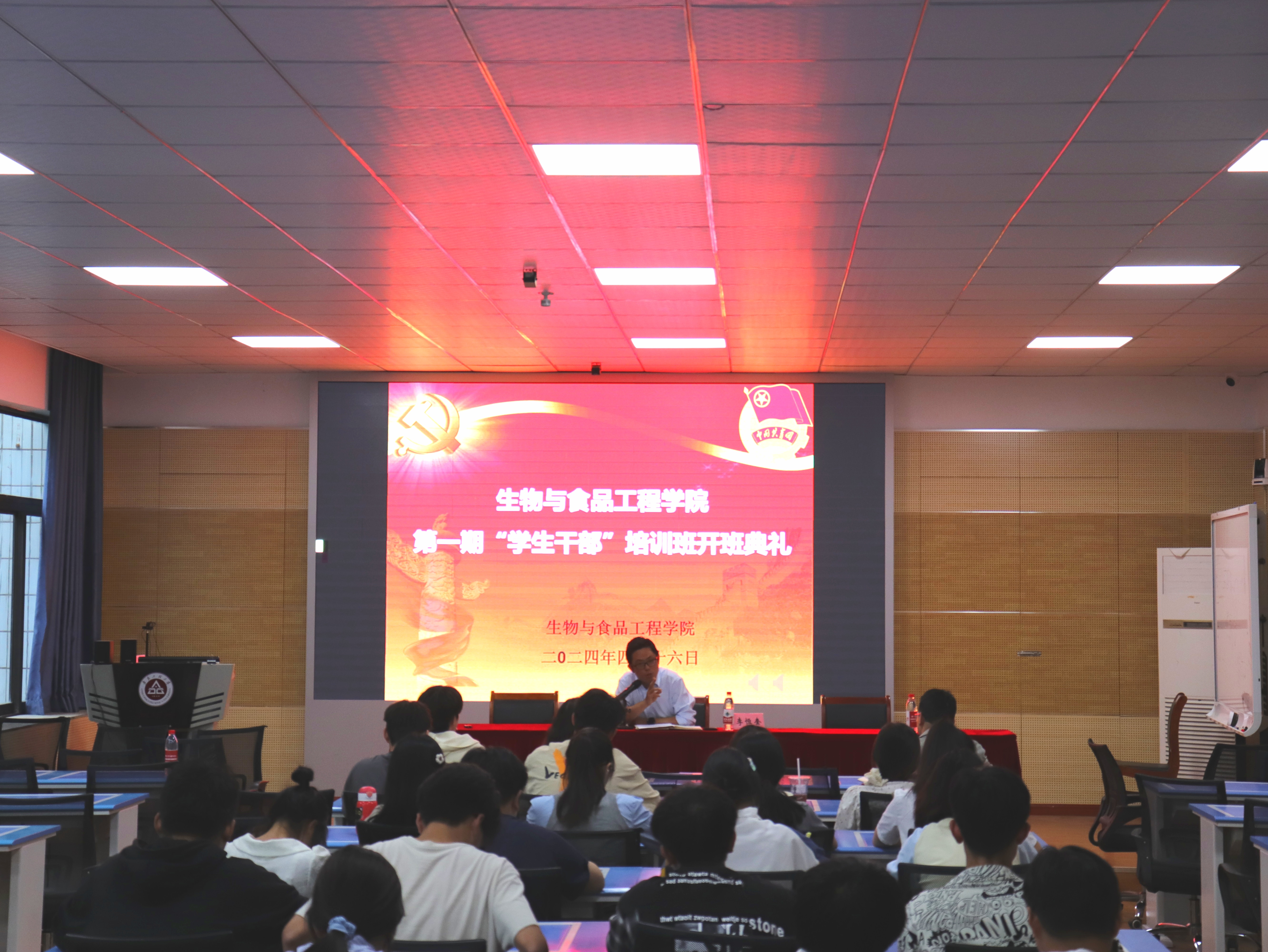 为进一步强化学生干部队伍建设,提升学生干部的综合素质,4月16日,生物与食品工程学院举办第一期“学生干部”培训班开班典礼暨开班第一课,校团委书记李恒奎、学院党委书记余传文、培训班班主任杨良军及全体50余名学员参加。