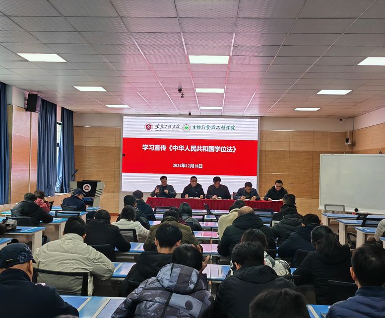 进一步贯彻落实《中华人民共和国学位法》,加强对学位制度的理解与认知,生物与食品工程学院于2024年1218日召开全体教职工大会,组织学习《中华人民共和国学位法》。会议由院长葛飞主持。