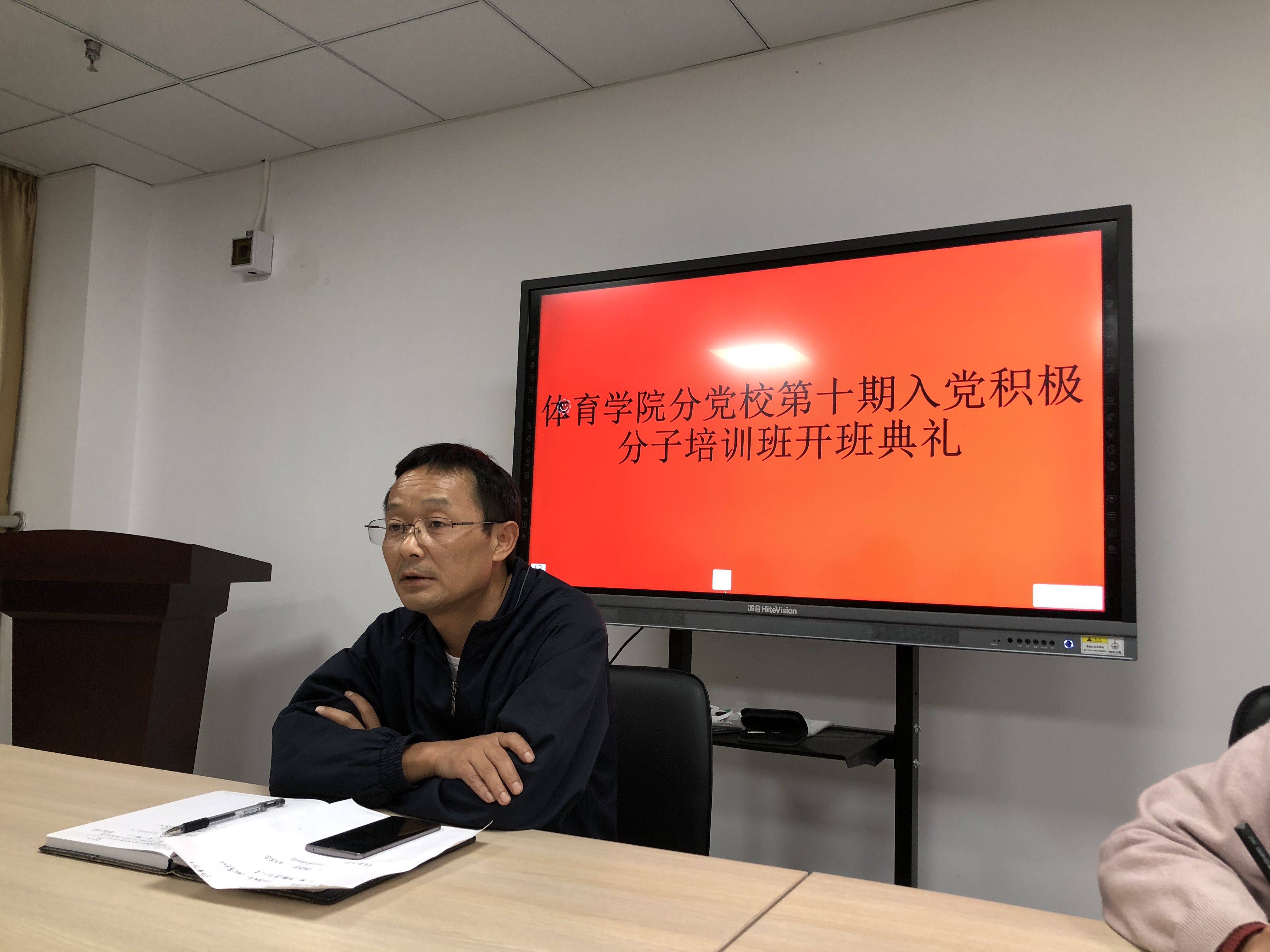 为规范发展党员工作程序,提高发展党员质量,帮助入党积极分子提高对党的认识,树立正确入党动机,坚定共产主义理想信念,114日晚18:30,体育学院举行第十期入党积极分子培训班开班典礼。学院党总支书记杨善祥、团委书记孙霞和28名入党积极分子参加开班典礼。