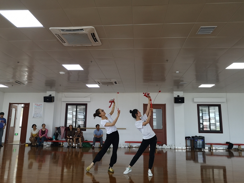16日上午,两位教师抵达凤阳县文化馆,在非遗传承人肖庆红老师的陪同下参观文化馆,进一步了解凤阳花鼓的相关知识,学习凤阳花鼓、花鼓灯、花鼓戏等传统文化发展历程。随后在凤阳县体育局,在花鼓舞蹈方面进行亲身体验和学习,对凤阳花鼓的重难点反复练习。