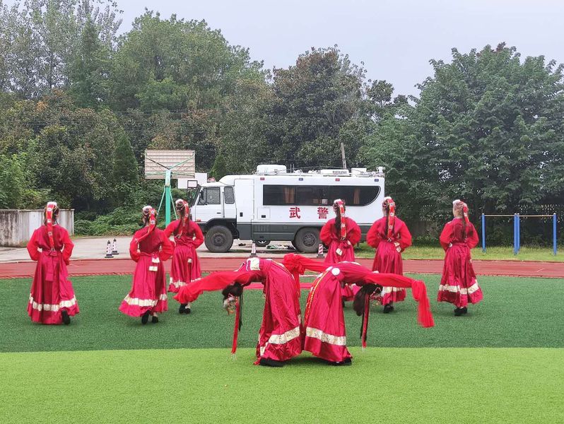 89日下午,校学生处杜松涛、体育学院黄蓉静两位老师率体育学院艺术团学生,带着慰问品驱车赶赴武警官兵的驻扎地——无为白茆镇中心小学,给他们带去精心准备的舞蹈演出。学生演出的精彩舞蹈让官兵们感受到来自大学生的热情,给他们带来短暂的精神愉悦和放松,官兵们脸上露出久违的笑容。演出期间学生们还准备了挂脖电扇等礼品与官兵进行了一些游戏互动,现场不断传出官兵们爽朗的笑声和热烈的鼓掌声。武警支队吴副政委表示,感谢大学生带来的文艺演出,这是一顿营养丰富的文化大餐,让战士们暂时卸下紧张情绪。艺术团的同学们表示,虽然不能和人民子弟兵一样去上前线抢险,但大家可以发挥自身的专业特长,给广大官兵们送去精神慰问,表达自己的敬佩与感激之情,是一件非常有意义的事。