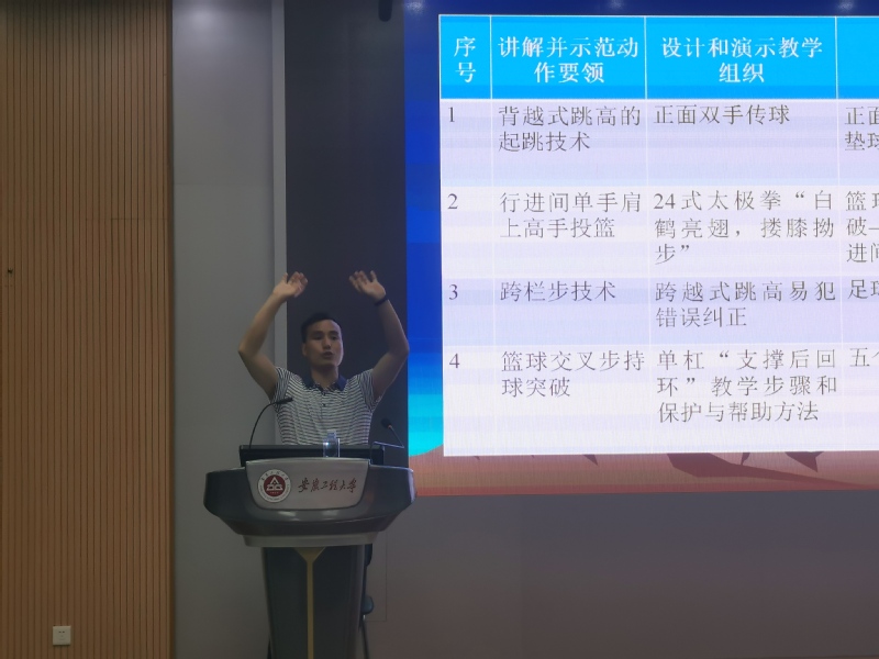 方以龙老师长年耕耘于体育教学领域,现任芜湖市中学体育大组副组长,是体育教师资格考试资深专家。就近年来体育教师资格考试动态变化情况,结合自己多年从教经验,从教师职业操守、基本能力和应试准备等方面着手,主要围绕教师资格证考试面试的4个主要环节、12个关键点为主要内容进行了详细的讲解和分析,并不时进行示范演示。讲座现场气氛热烈,互动频繁,同学们随着方老师的示范不时进行各种动作模仿,踊跃参与模拟答题。最后提问环节,方老师还对同学们关心的问题逐一进行了悉心解答。