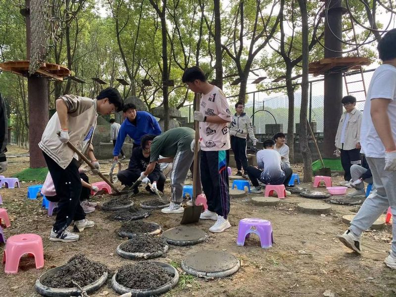 为全面贯彻中共中央国务院关于《新时代大中小学劳动教育的实施意见》和教育部《大中小学生劳动教育实施纲要》文件精神,落实“三抓”工作要求,推进“三全六专”学生工作专项任务落到实处,在学校教务处和人文素质教育中心的协助指导育人优势下,组织体验产业学院“红品德”教学团队,利用校内营地资源,以问题为导向,围绕努力让学生“正”起来、“学”起来、“壮”起来、“乐”起来、“勤”起来、“和”起来目标要求,为全校学生开设了《五生劳动教育》实践课程。该课程立足落实立德树人根本任务,探索实践育人基本途径,紧紧围绕促进学生全面健康发展,以营地为载体开展劳动实践教育。课程设计旨在让学生在生产劳动中培养生存本领、生活技能、生态和谐和生命价值等五生教育目标,教学实施采取通过净化(营地整理)、绿化(盆景制作)、美化(地砖加工)、文化(留爱校园)和内化(学思践悟)的五化实践育人路径,达成以劳强体、以劳树德、以劳增智、以劳尚美的五育融合并举的实践育人目的。