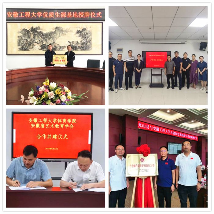 学院党政领导先后赴责任片区宣城市,分别走访宣城市第二中学、广德中学、绩溪中学、旌德中学,开展2023年本科招生宣传工作。暑假期间,先后与安徽新华学院、安徽省体育教育协会、唐婧舞蹈艺术学校、安徽英雄山教育科技有限公司等单位签订合作协议;与光山县红色文化宣传教育中心、光山县体育服务中心共建红色体育实践教学和研究基地,积极推进产学研合作与交流,在学生实习就业、体育产业开发、体育科学研究、社会服务等方面开展合作,全面提升学院专业影响力和贡献度。
