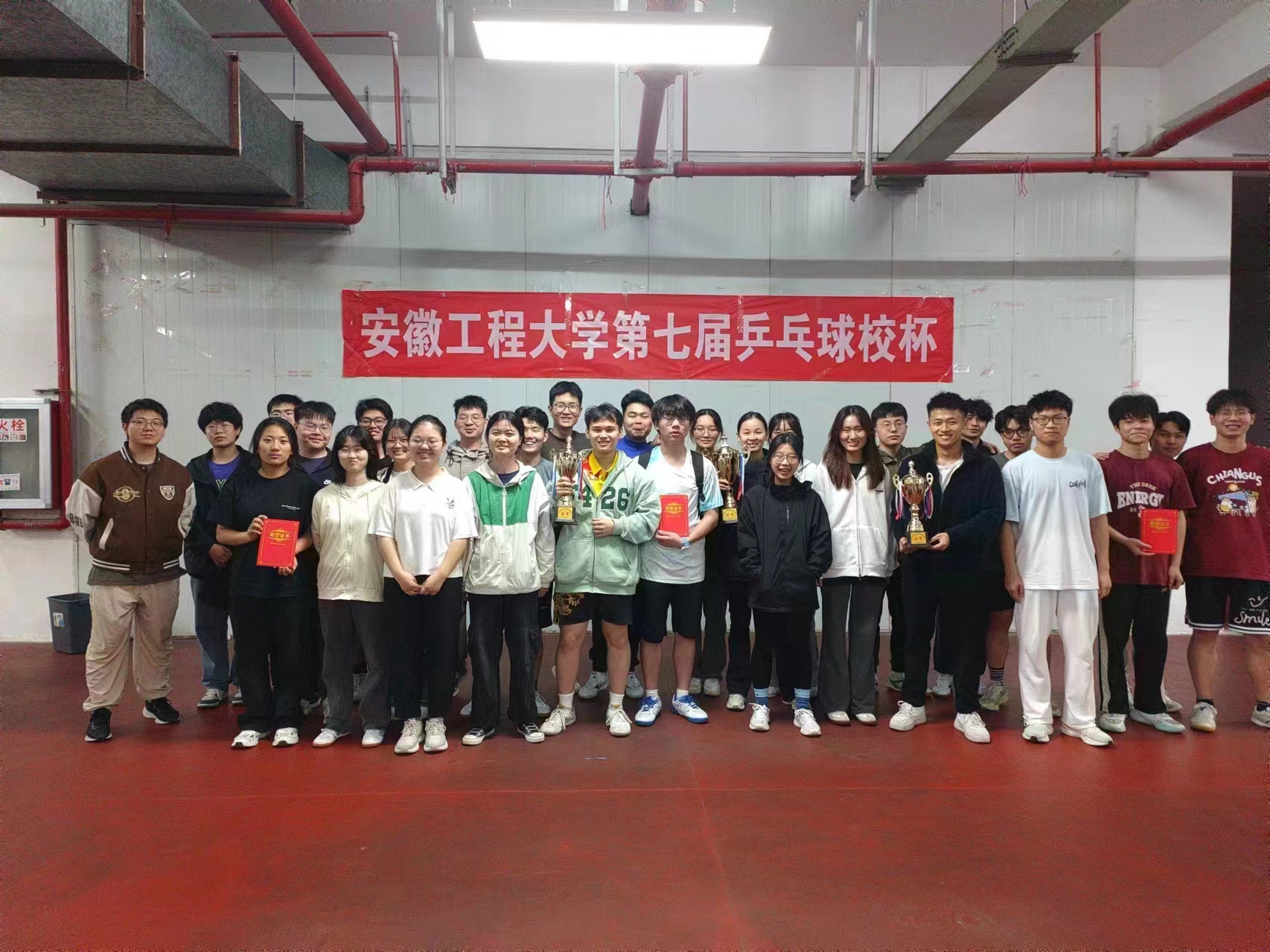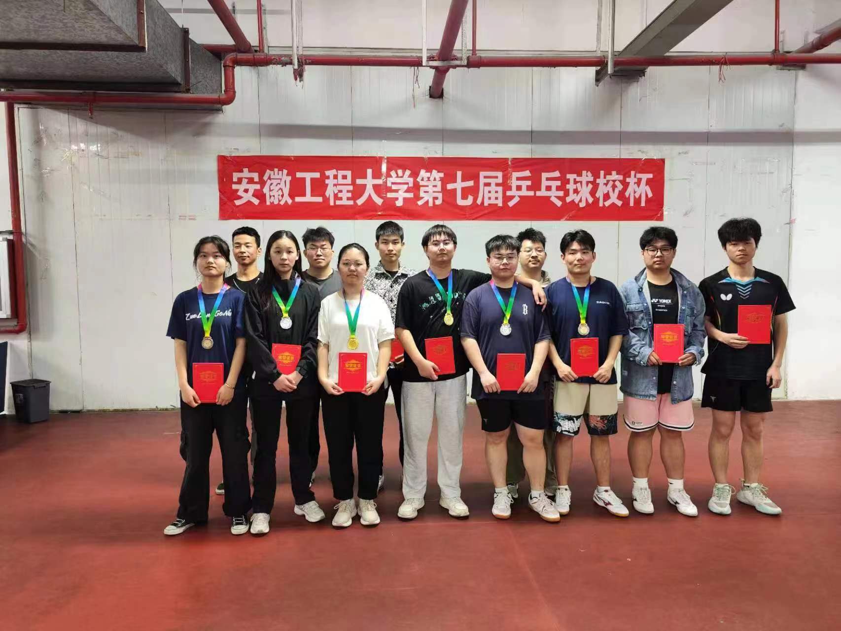 经过激烈角逐,数理与金融学院最终荣获团体冠军,经济与管理学院、计算机与信息学院代表队分获二、三名,建工、人工智能、生食、材料、外语代表队位列五至八名。个人赛方面,自动化212张浩然同学获得男子单打冠军,工程212李志、统计222马理想分获亚军、季军;计科231李漉淘获得女子单打冠军,金融213郑玉可、纺织221许大静分获亚军、季军。