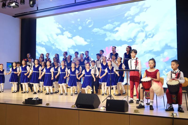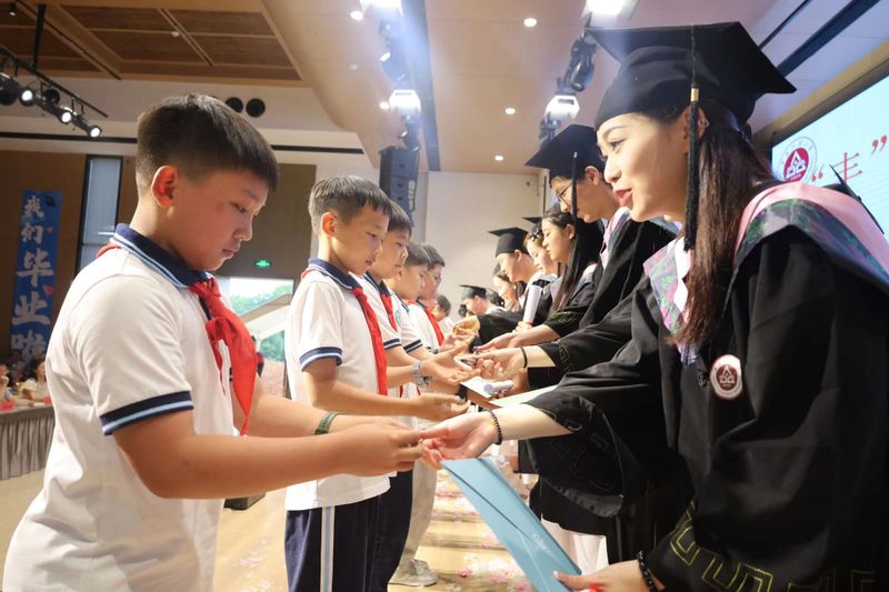 2024届本科毕业生首先用精彩的节目向各位领导、老师、家长进行专业汇报,通过精心编排的拉丁舞、现代舞、民族舞、啦啦操、健美操等节目充分展示了专业学习成果。沈巷中心小学的同学们带来了《萱草花》《杵歌》,用甜美的歌声为2024届毕业生送来真挚的祝福。专业汇报在全体毕业生与沈巷中心小学学生互换纪念品中结束。