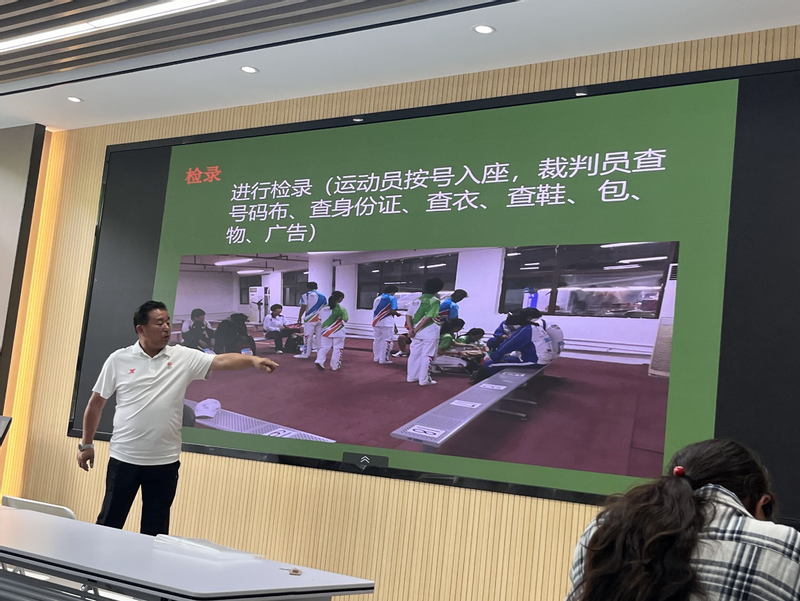 讲座内容涵盖了裁判员的基本素养、比赛规则解读、比赛中的技术判断等知识,各位老师结合多年的裁判员经验,深入浅出地解读了田径赛事各项比赛规则,重点讲解了裁判员在比赛中应该注意的细节和技巧,引导同学们正确处理赛场上的各种突发情况。交流环节,同学们积极参与讨论,就实际操作中遇到的问题和困惑向各位老师请教,使得培训效果更加显著。同学们纷纷表示受益匪浅,对自己今后在田径赛事中的执裁工作更加有底气有信心。