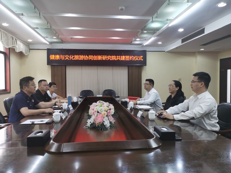 座谈会后,程进与张勇代表双方签订了校企共建健康与文旅产业协同创新研究院协议,肖沛宇与谢叶寿为研究院揭牌,双方围绕研究院建设发展开展了交流会,达成多项共识。