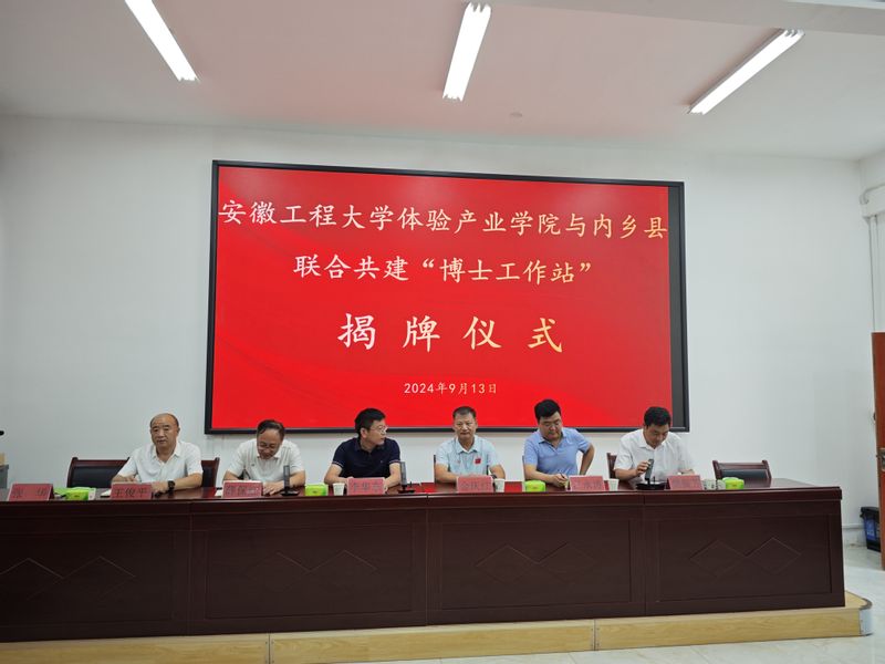 2024年9月13日,体育学院体验产业学院赴河南省内乡县考察国家级学生综合素质训练基地建设情况,并与河南省内乡县人民政府举行了共建“博士工作站”揭牌仪式。仪式在南阳市国家级示范性综合实践基地举行,内乡县县委常委、宣传部部长李华东,内乡县教体局副书记樊振芳,南阳市国家级示范性综合实践基地主任王俊平,体育学院副院长金庆红,体验产业学院执行院长薛保红,体验产业学院设计中心张华,基地班子成员和全体教师等出席活动。揭牌仪式由樊振芳主持。