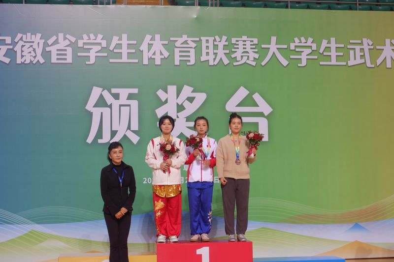本次比赛校武术队由体育学院院长胡好领队,主教练汪韧,教练员张振霖、张航、胡昌领四位老师指导的11名队员参加比赛。人工智能学院鲍慧琴同学荣获普通生组女子自选刀术冠军,生物与食品工程学院李冰旭同学获得普通生组女子自选棍术冠军,人文学院李凡同学获得普通生组男子自选刀术亚军,设计学院刘国康同学获得普通生组男子自选棍术亚军,生物与食品工程学院方天志同学获得普通生组男子南拳季军。