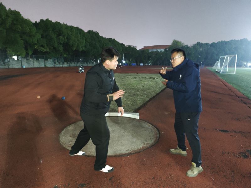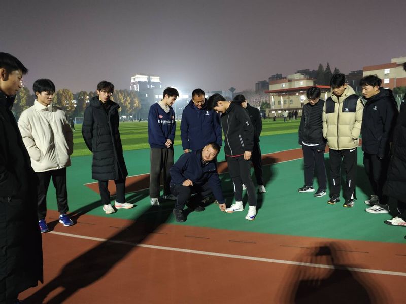 双方教练对百米项目的起跑反应、加速冲刺以及途中跑节奏控制等关键技术做了详细的解析,结合实例视频展示了优秀运动员的技术动作,对比分析出同学们日常训练中容易忽视的细节问题。金庆红为同学们示范了铅球项目的教学技能和训练方法,动作规范专业,讲解诙谐生动,余华龙就铅球技术进行了具体指导。在两位教练的悉心指导下,同学们精准掌握了铅球投掷背后的力学原理与技术要点。整个交流环节,现场气氛真诚而温馨。