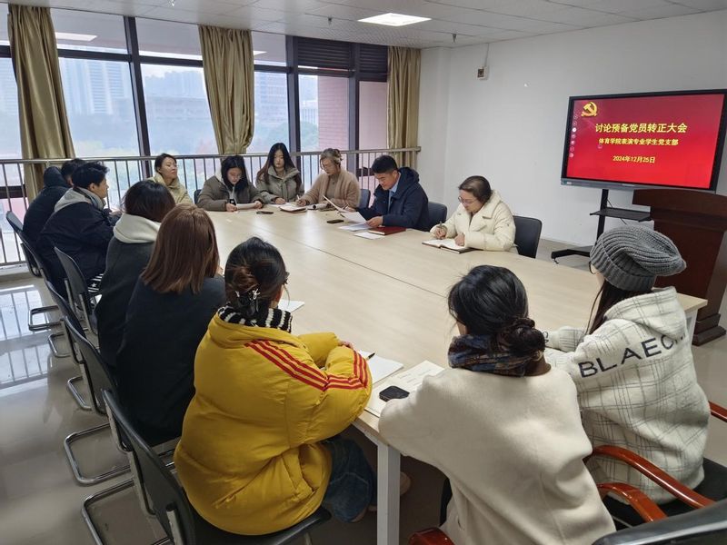 12月25日下午,体育学院表演专业学生党支部于体院413会议室举行党员大会,专题讨论支部中共预备党员陈雨婷的转正事宜。会议由党支部书记范同军主持,全体党员参加会议。