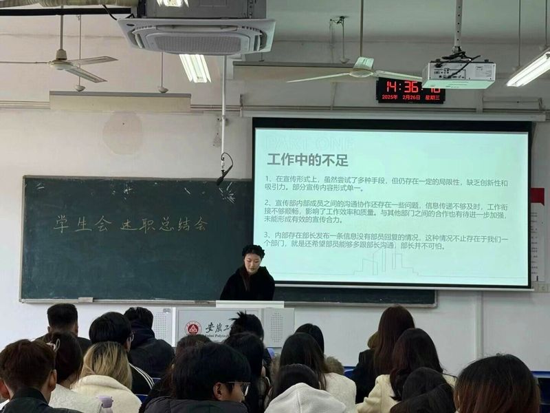 会议伊始,各部门负责人依次走上讲台,进行了全面且深入的述职汇报。他们以详实的数据和丰富的案例,对过去一段时间内部门工作的开展情况进行了系统总结,深入剖析了工作中的成绩与不足。在回顾成功经验时,大家分享了如何通过创新活动形式吸引更多同学参与体育赛事,以及怎样优化组织流程提升活动质量等宝贵心得。而在反思失误时,也坦诚指出了诸如沟通协调不畅、任务分配不合理等问题,为后续改进提供了清晰的方向。围绕如何提升工作效率、强化部门协作以及增进沟通交流关键议题,现场展开了热烈讨论。同学们各抒己见,提出了许多切实可行的建议。大家一致认为,只有打破部门壁垒,加强沟通协作,才能更好地发挥学生会的整体效能,为同学们提供更优质的服务。