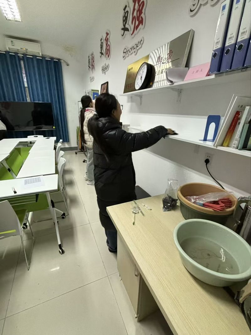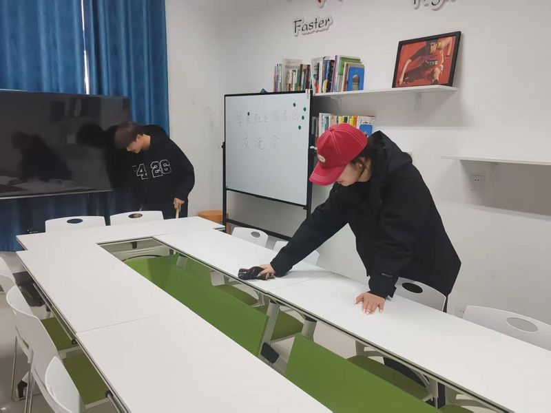 活动当日,在团支部的有序组织下,多名志愿者携带扫帚、抹布等工具准时集合。大家迅速分组、明确分工,满怀热忱地投入劳动。有的志愿者认真清扫地面,不放过任何一处灰尘;有的仔细擦拭门窗,让每一个角落都洁净如新;还有的负责整理书架书籍、摆放桌椅。经过一下午的努力,文化活动室环境焕然一新,书架整齐有序,桌椅摆放规整。