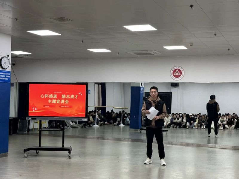 3月19日下午,体育学院“心怀感恩,励志成长”主题班会在学院四教舞蹈房顺利召开。24级至22级全体本科生参加会议,班会由辅导员黄蓉静主持。