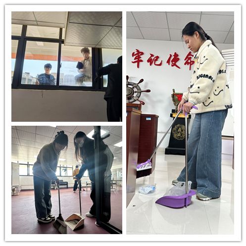 活动当日,表演231团支部的团员们热情满满,早早集合完毕,携带清洁工具奔赴413会议室、415会议室、教职工活动室以及学生心理晤谈室。抵达目的地后,大家迅速按照预先安排明确分工,有序展开全面细致的清洁工作。一部分团员专注于擦拭桌椅、门窗,让每一处家具都焕发光彩;一部分负责清扫地面,不放过任何一片纸屑;还有一部分则着重清理角落积藏的灰尘。大家秉持不怕脏、不怕累的精神,个个干劲十足。经过数小时的齐心协力,原本的会议室和活动室旧貌换新颜,为师生们营造出一个整洁、舒适的环境。