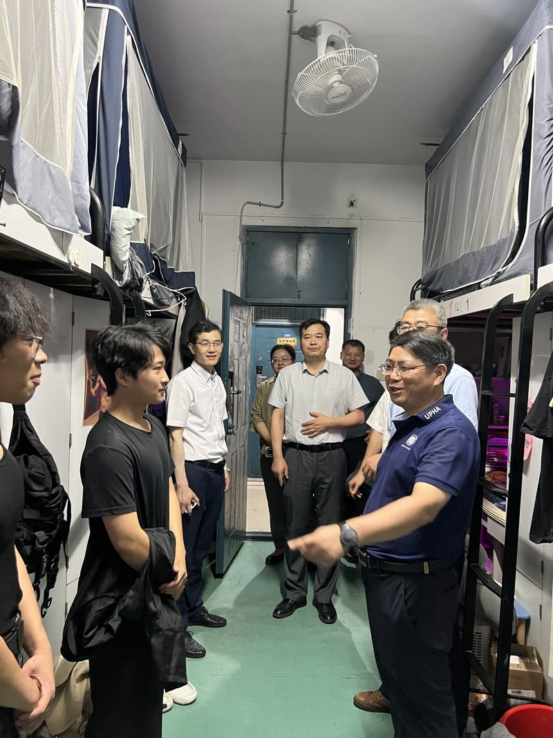 在走访过程中,校领导一行对宿舍安全情况进行了检查。