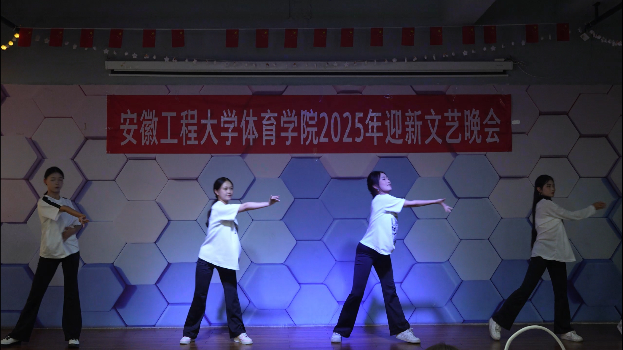 晚会在悠扬且深情的歌曲串烧中徐徐拉开帷幕,即刻点燃了全场的热烈氛围。整场晚会的节目形式丰富多元,内容精彩纷呈,高潮接连不断。既有彰显专业特色的体育舞蹈表演,舞者刚柔相济的动作、恢宏的气势,将拉丁舞的独特魅力展现得酣畅淋漓;也有活力四射的健美操表演,完美呈现了力与美的交融;亦有美轮美奂的中国古典舞,充分展示了中华传统文化的源远流长与独特韵味。更有深情动人的歌曲联唱《爱的回归线》等,唱出了新生们对大学生活的美好期许。同学们凭借精湛的技艺和饱满的热忱,将每一个节目都演绎得惟妙惟肖,赢得了现场观众的阵阵热烈掌声。