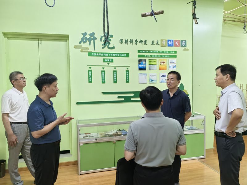黄友锐校长一行首先实地走访了学院舞蹈教室、专业实验室及体验产业学院展厅。在考察过程中,校领导对学院精心打造的文化墙建设成果给予了高度肯定。