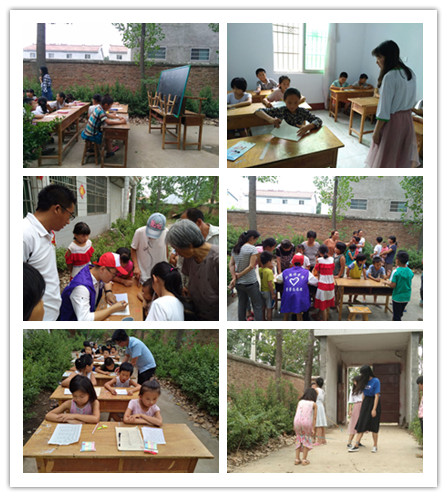 经过几天的沟通和协调,志愿者们落实了住宿地和活动地后,在当地村支部的支持下,在活动地门口搭建了咨询点和报名点。志愿者们通过与当地孩子们的交流和玩耍,迅速和他们打成一片,来报名的学生截至发稿前已近80余人,横跨8个年级。在试听课上,教室已经不够用了,大家就把桌椅搬到室外,就如志愿者高俊说的,“风再大,也吹不走我们的赤子心,雨再大,也不能浇灭我们如火的热情。教室不够用,就算在院子里,我们也要把知识传递给孩子。”