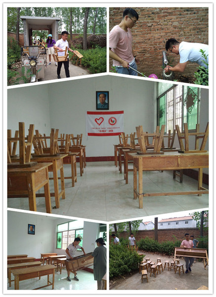 8日凌晨5时,志愿者们到达车站,在当地志愿者服务站的帮助,来到了北贺庄村。大家拖着疲惫的身躯不顾一夜未眠,一心想着抓紧落实上课教室。在当地爱心人士和村民帮助下,志愿者们借用了一户村民荒置的住宅作为教室。不过住宅长期未使用且没有课桌椅,打扫和搬运课桌椅是一个巨大的工程。志愿者们虽然已是劳累,不过落实了支教场地,很是喜悦,迅速的投入到教室的打扫和布置之中。经过志愿者们辛勤的劳动,久置的老宅焕然一新,等着迎接它的第一批学生。
