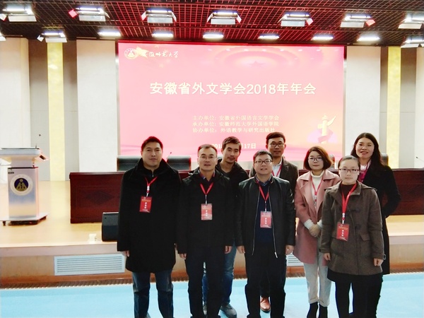 1116-18日,由安徽省外国语言文学学会主办、安徽师范大学外国语学院承办、外语教学与研究出版社协办的“安徽省外国语言文学学会2018年年会”在安徽师范大学隆重举行。来自全省本科、高职高专院校的200余名外语界专家学者、教师代表出席了本次盛会。我校外国语学院副院长黄焰结教授带领8位教师人参加了本次年会的学习交流和研讨活动。