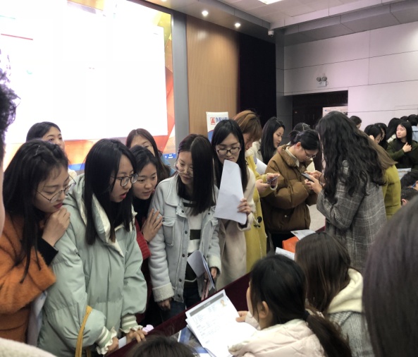 刘云云首先对五家用人单位的到来表示热烈的欢迎,其次分析目前学院毕业生就业情况,介绍与会场几家单位洽谈的过程、各自的特色及其与英语、日语专业的关联性,最后她希望学生能够借助本场招聘会了解就业实况、明确职业择向、树立人生目标,更是以一名恨嫁“老母亲”的形象自喻,表达了对学生们能找到好归宿的深切希望。